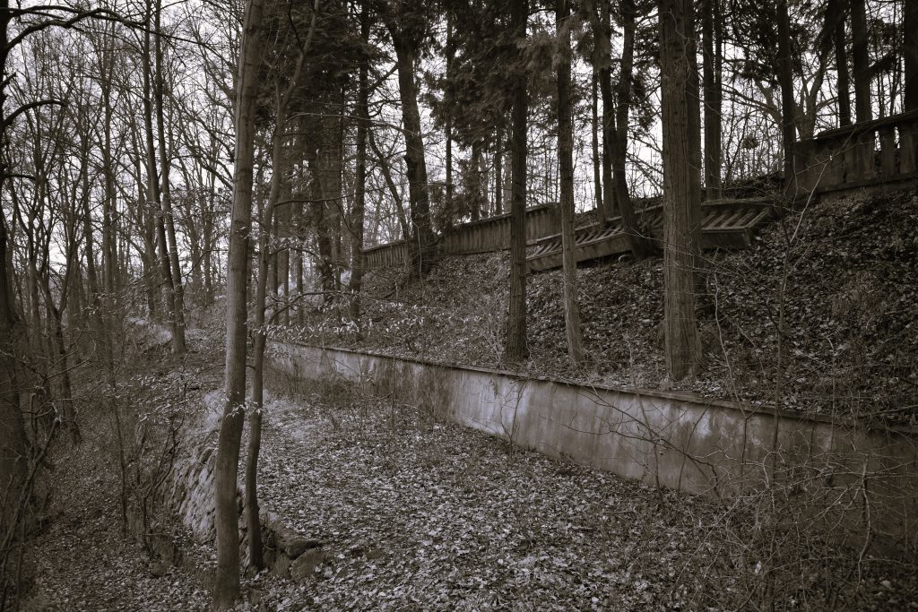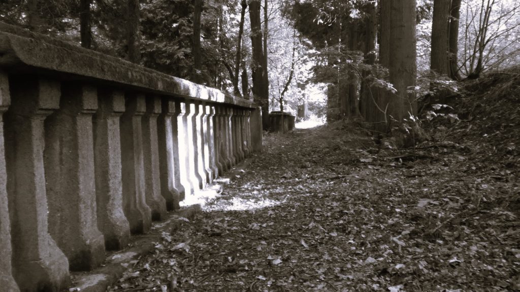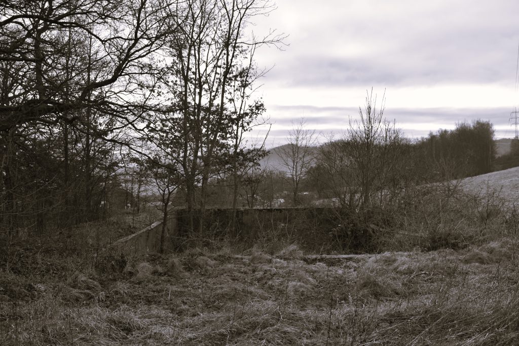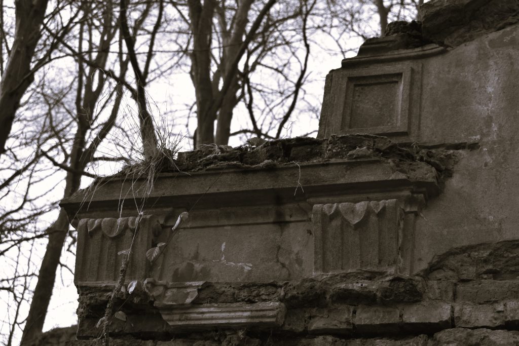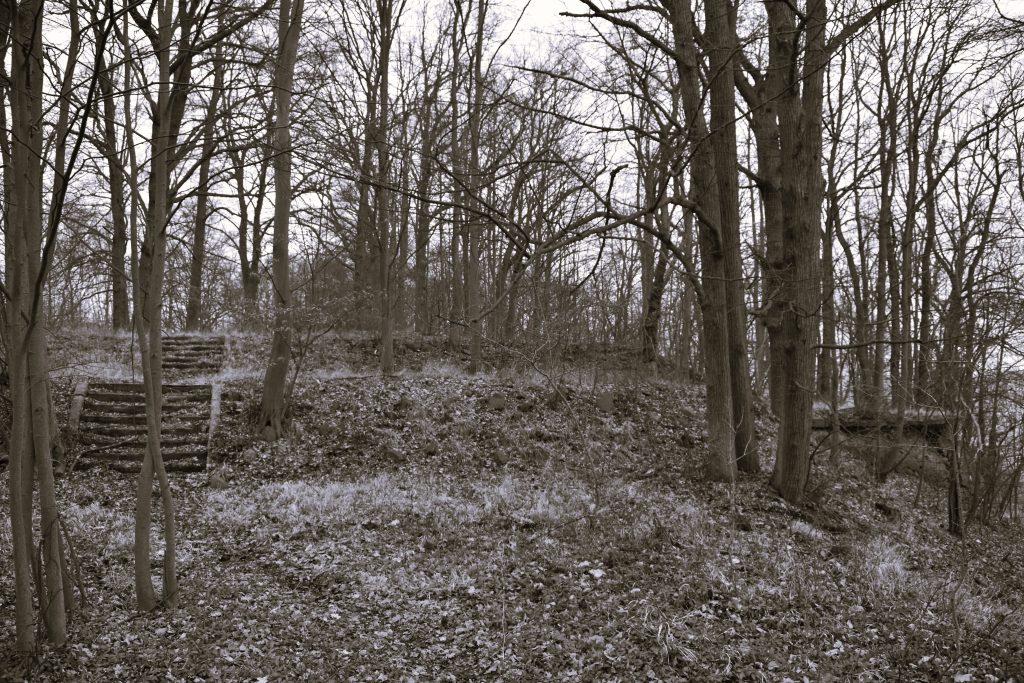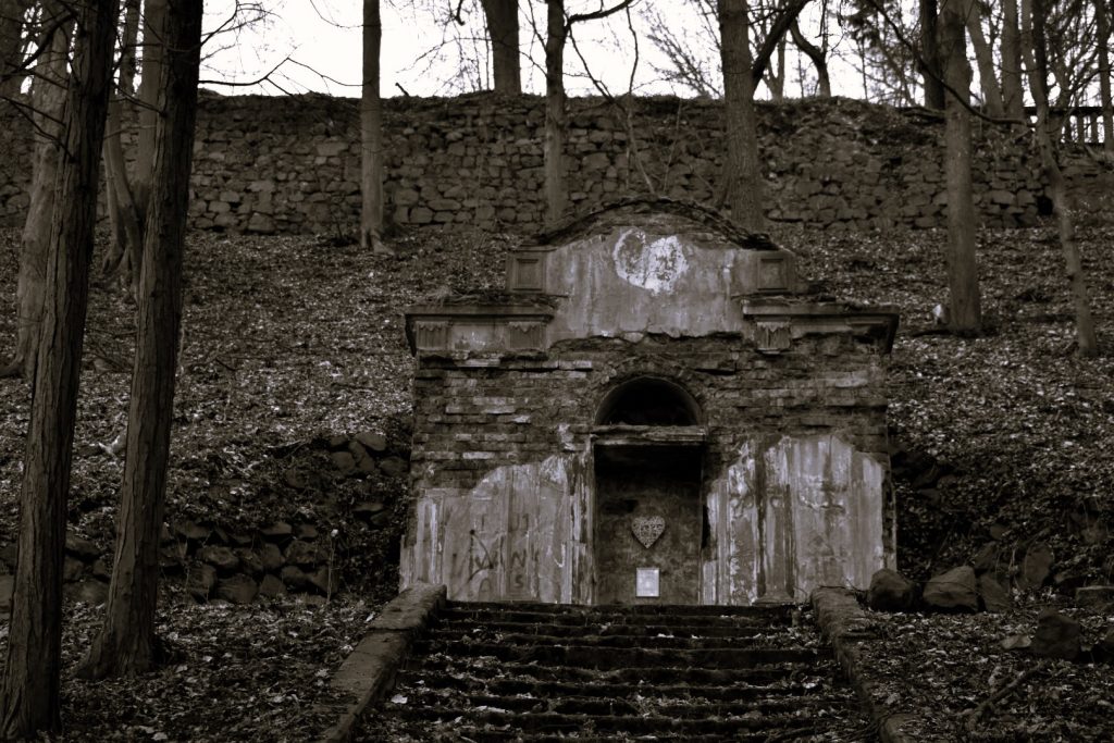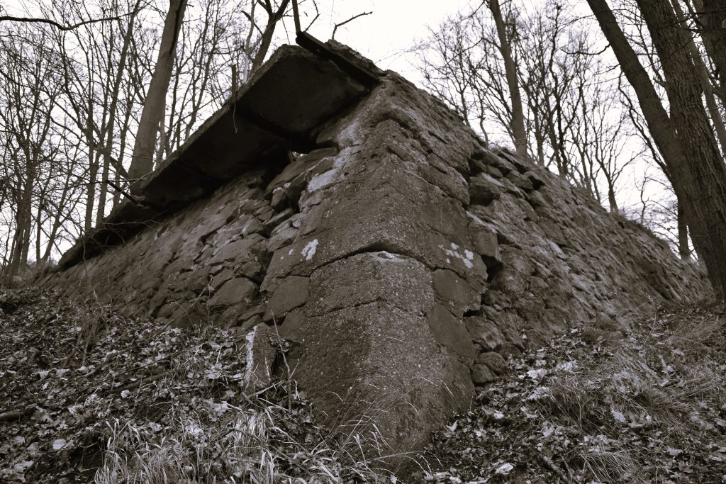 Zbytky areálu : torso mausolea a teras objevíte na zalesněném vršku nad děčínskou částí Chmelnice.