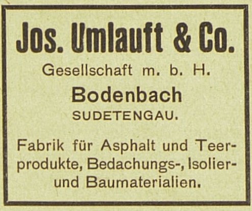 V roce 1914, ještě před vypuknutím války, byl podnik samotným zakladatelem přeměněn na společnost s ručením omezeným (Jos. Umlauft & Co.), do níž kromě členů rodiny byli také přijati jako partneři dva nejstarší funkcionáři společnosti (Josef Mattausch a Emil Aftler) jako uznání za jejich loajální a dlouhodobou spolupráci. Při této transformaci se firma rozrostla o prstencovou parní cihelnu, továrnu na kebracholit a cementářské zboží