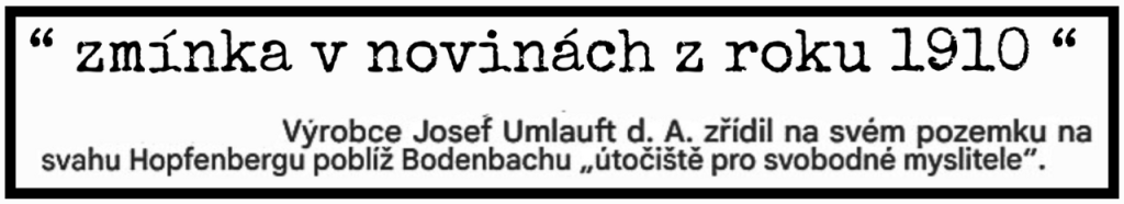 Historie Freidenkerheimu se začala psát 13.10. 1903, kdy pětašedesátiletý fabrikant Josef Umlauft zakoupil několik pozemků v Chmelnici.