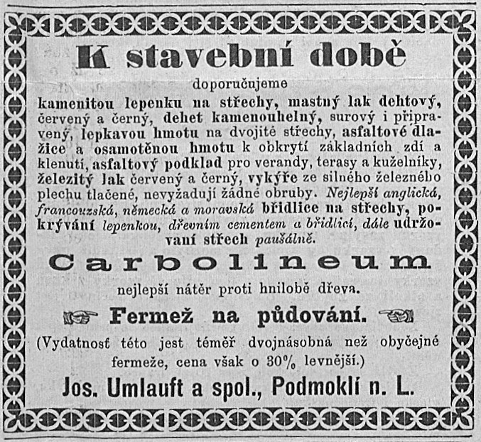 V roce 1869 se Umlauft usadil v Podmoklech jako samostatný pokrývač a začal s výrobou střešní lepenky. Ve Vilsnici, v malé sušárně ovoce, která byla majetkem jeho starého přítele Hiebsche, zahájil výrobu. Svou první střešní lepenku vyráběl vlastníma rukama. Často ji musel v noci vyrobit a po krátkém odpočinku ji druhý den dát někde na střechu.