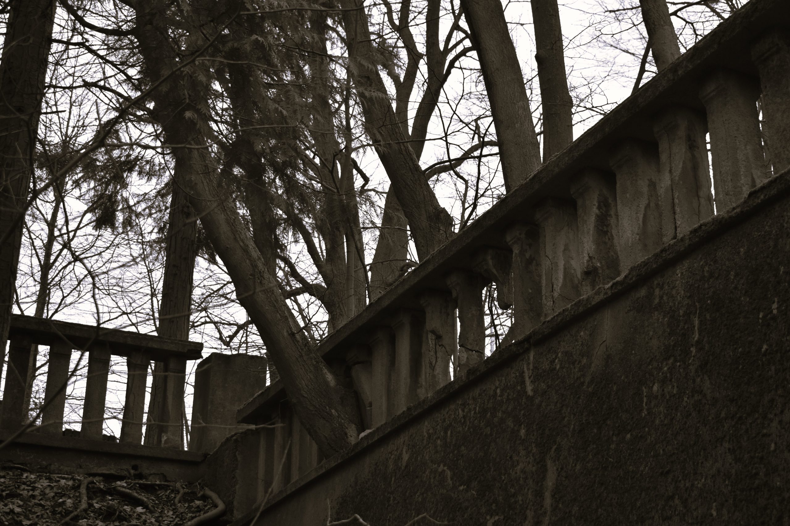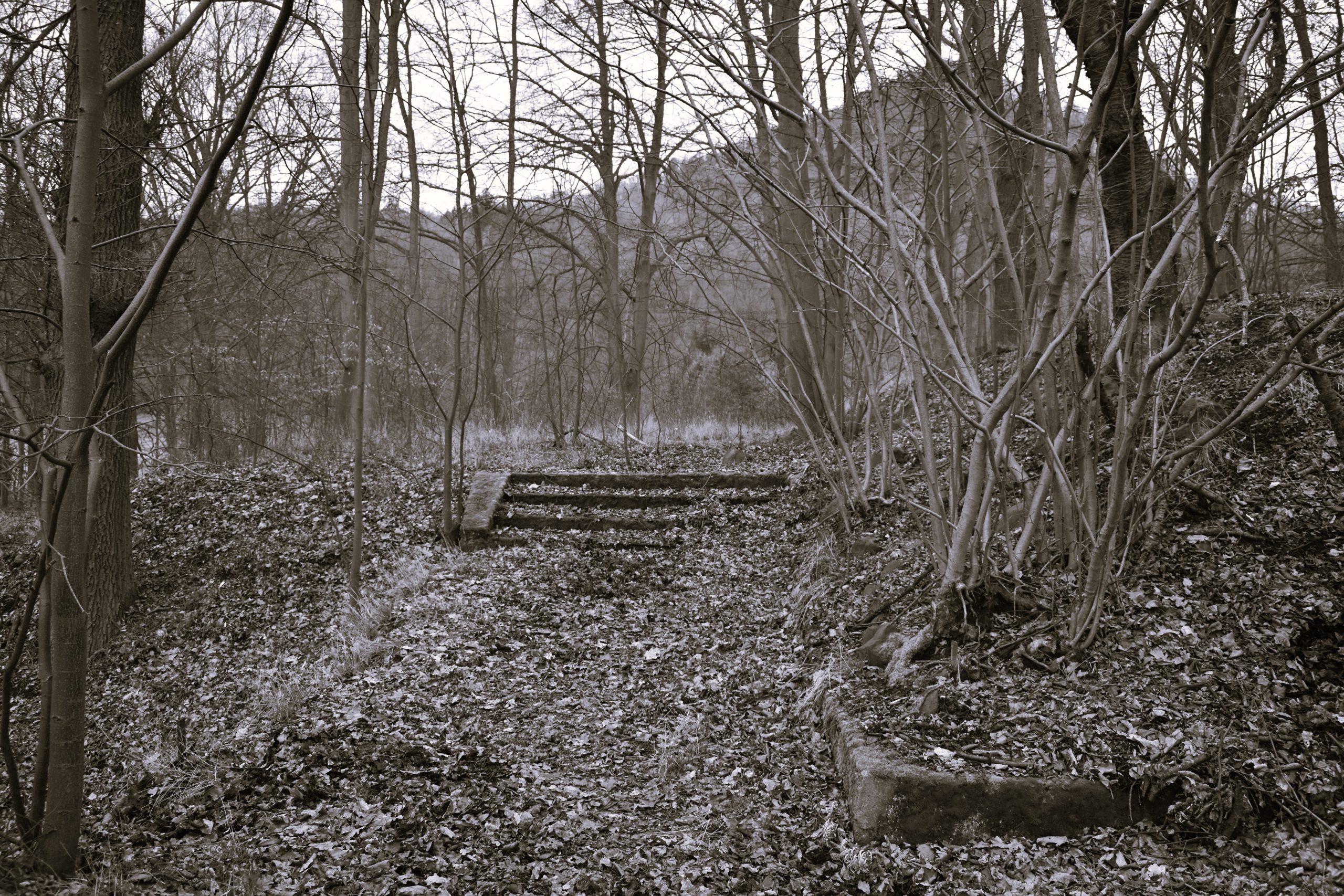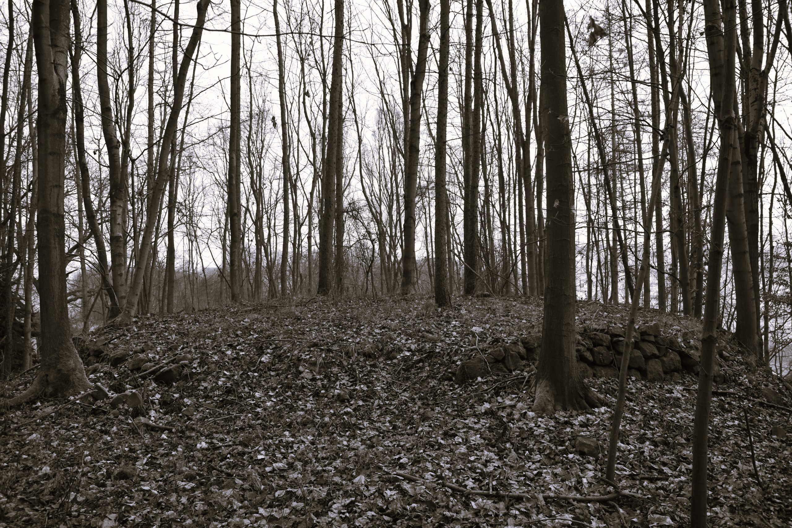 Zbytky areálu : torso mausolea a teras objevíte na zalesněném vršku nad děčínskou částí Chmelnice.