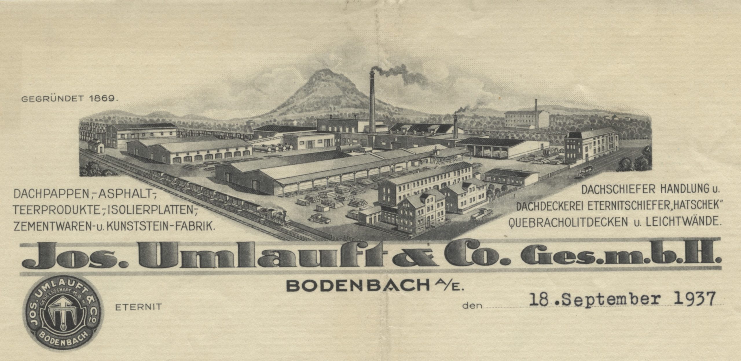 Umlauftova bezpříkladná dřina, inspirující smysl pro povinnost a horlivá vůle způsobily, že po pouhém roce provozování tohoto malého podniku bylo možné přemístit a rozšířit výrobní závod z Vilsnice do Podmokel-Želenic. V roce 1869 byl položen základní kámen továrny na střešní lepenku v ulici Schlachthofstrasse (dnešní ulice Dělnická v místě parkoviště autobusů dopravního podniku Děčín).