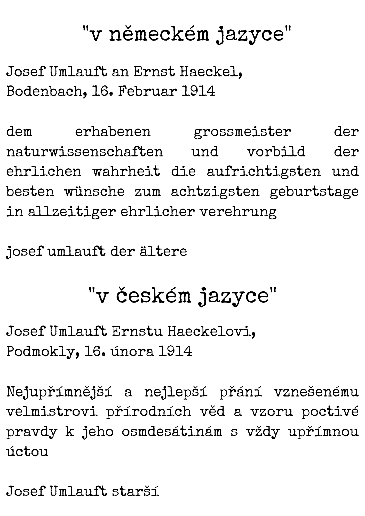 Josef Umlauft byl myslitel a hledač pravdy a toto snažení ho přivedlo i k živé korespondenci a osobnímu kontaktu s muži, jejichž jména jsou ve vzdělaném světě dobře známá.